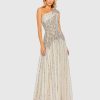 Mac Duggal Women’s Dresses Green Beaded Mesh High Neck Micro Ruffle Gown | Sage