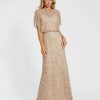Mac Duggal Women’s Dresses Pink Drawstring Shoulder Chiffon Tiered Floral Dress | Pink