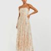 This elegant gown features intricately embroidered fabric, elegantly crafted to add a touch of sophistication to any event. The flutter sleeves and v-neckline create a flattering silhouette, making this dress a perfect choice for formal occasions.