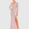 Crafted with a delicate net fabric, this gown exudes elegance. Featuring a V-neck and kimono sleeves, it sets the stage for an effortlessly sophisticated look. The sequin detailing adds a touch of sparkle, making it a perfect choice for any special occasion.
