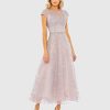 Mac Duggal Women’s Dresses Pink Sleeveless Floral Chiffon Micro Ruffle Midi Dress | Pink Multi