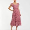 Mac Duggal Women’s Dresses Yellow Pleated Chiffon V Neck Ruffle Midi Dress | Yellow