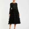 Mac Duggal Women’s Dresses Beige Illusion Floral Midi Dress With Ruffle Detailing | Beige Multi