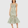 Mac Duggal Women’s Dresses Blue Floral Mesh Ruffle High Neck Midi Dress | Blue Multi