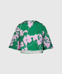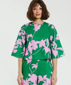 Mac Duggal Women’s Green Printed Crepe 3/4 Bell Sleeve High Neck Top – Final Sale | Green Multi