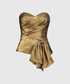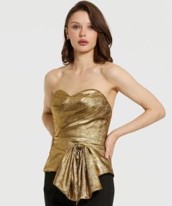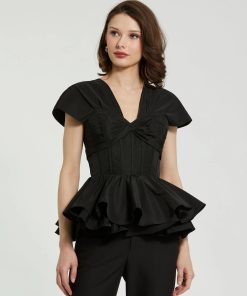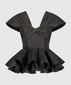 Mac Duggal Women’s Black Faille Twist Bustier Peplum Top | Black