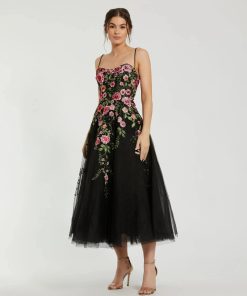 Mac Duggal Women’s Dresses Black Multicolor Bustier Embroidered Floral A-line Dress | Black Multi