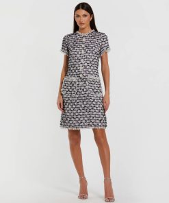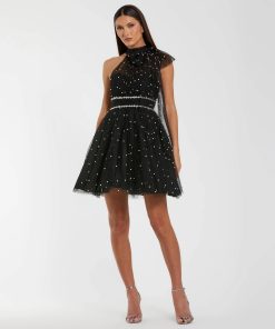 Mac Duggal Women’s Dresses Black Pearl Embellished A Line Mini Dress With Bow | Black