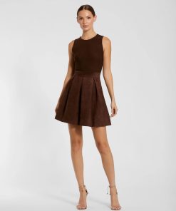 Mac Duggal Women’s Dresses Brown Sleeveless Mesh And Suede A Line Mini Dress | Brown