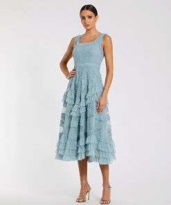 Mac Duggal Women’s Dresses Blue Scoop Neck Sleeveless A-line Ruffle Midi Dress | French Blue