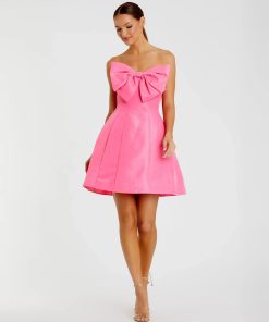 Mac Duggal Women’s Dresses Pink Strapless Oversized Bow Fit u0026 Flare Mini Dress | Pink