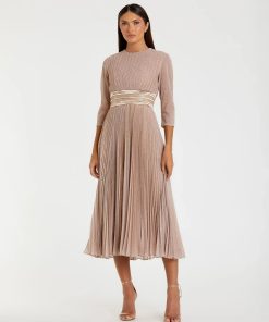 Mac Duggal Women’s Dresses Pink Shimmering 3/4 Sleeve A-line Midi Dress | Rose Gold