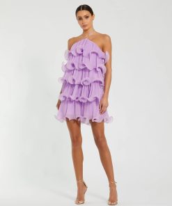 Mac Duggal Women’s Dresses Purple Crinkle Chiffon Tiered Ruffle Mini Dress | Purple