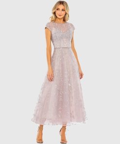 Mac Duggal Women’s Dresses Purple Embellished High Neck Cap Sleeve A Line Dress | Lilac