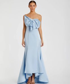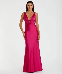Mac Duggal Women’s Dresses Hot Pink Sleeveless V Neck Satin Gown With Bow Details | Raspberry