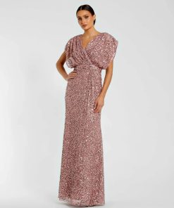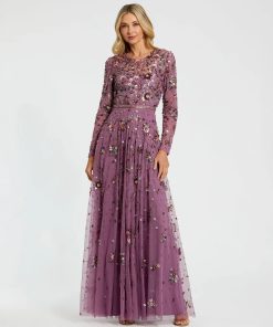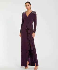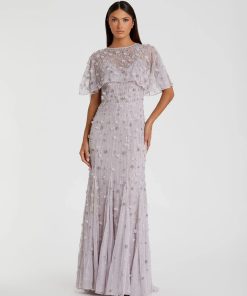 Mac Duggal Women’s Dresses Purple Embellished Illusion Cape Sleeve Trumpet Gown | Vintage Lilac