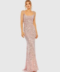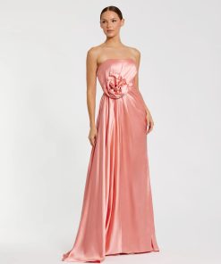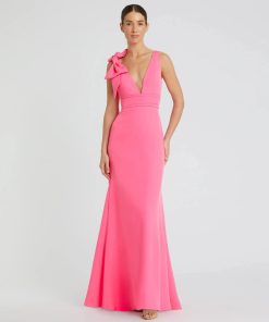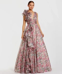 Mac Duggal Women’s Dresses Pink Sleeveless V-neck Floral Chiffon Ruffle Ball Gown | Pink Multi