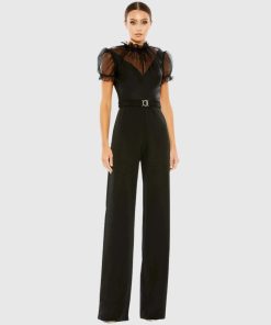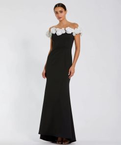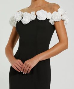 Mac Duggal Women’s Dresses Black And White Stretch Crepe Mermaid Gown With 3d Flowers | Black Cream