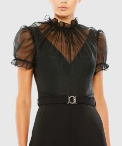 Mac Duggal Women’s Dresses Black Bustier Sleeveless A-line Tulle Midi Dress | Black