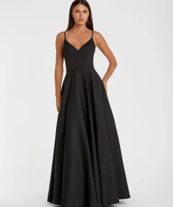 Mac Duggal Women’s Dresses Black Brocade Drop Waist Midi Dress With Satin Bow | Black