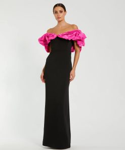 Mac Duggal Women’s Dresses Black Crepe Printed Strapless Midi Dress With Pockets | Black