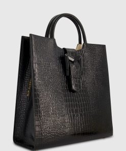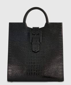 Mac Duggal Women’s Black Buckled Maxi Croco Leather Tote Bag | Black
