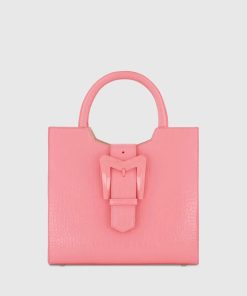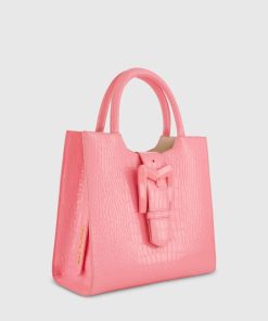 Mac Duggal Women’s Pink Buckled Medium Croco Leather Tote Bag With Detachable Strap | Hibiscus