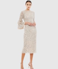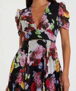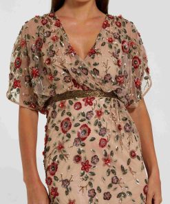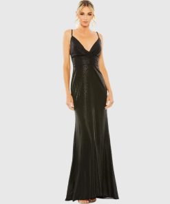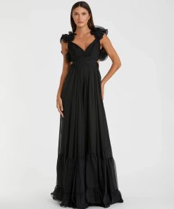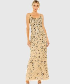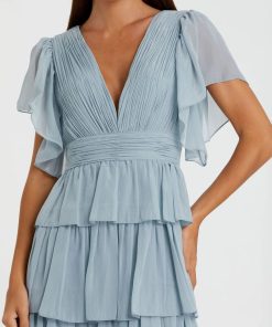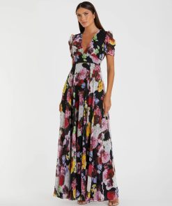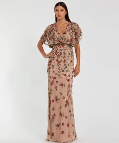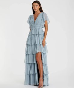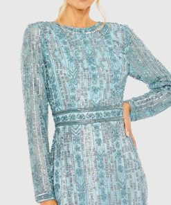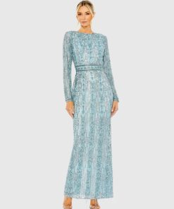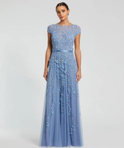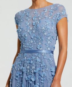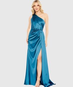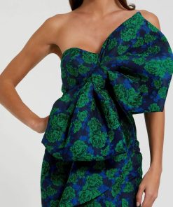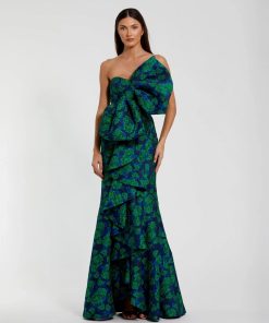Mac Duggal Women’s Wedding Blue And Green Strapless Brocade Fitted Gown With Oversized Bow | Blue