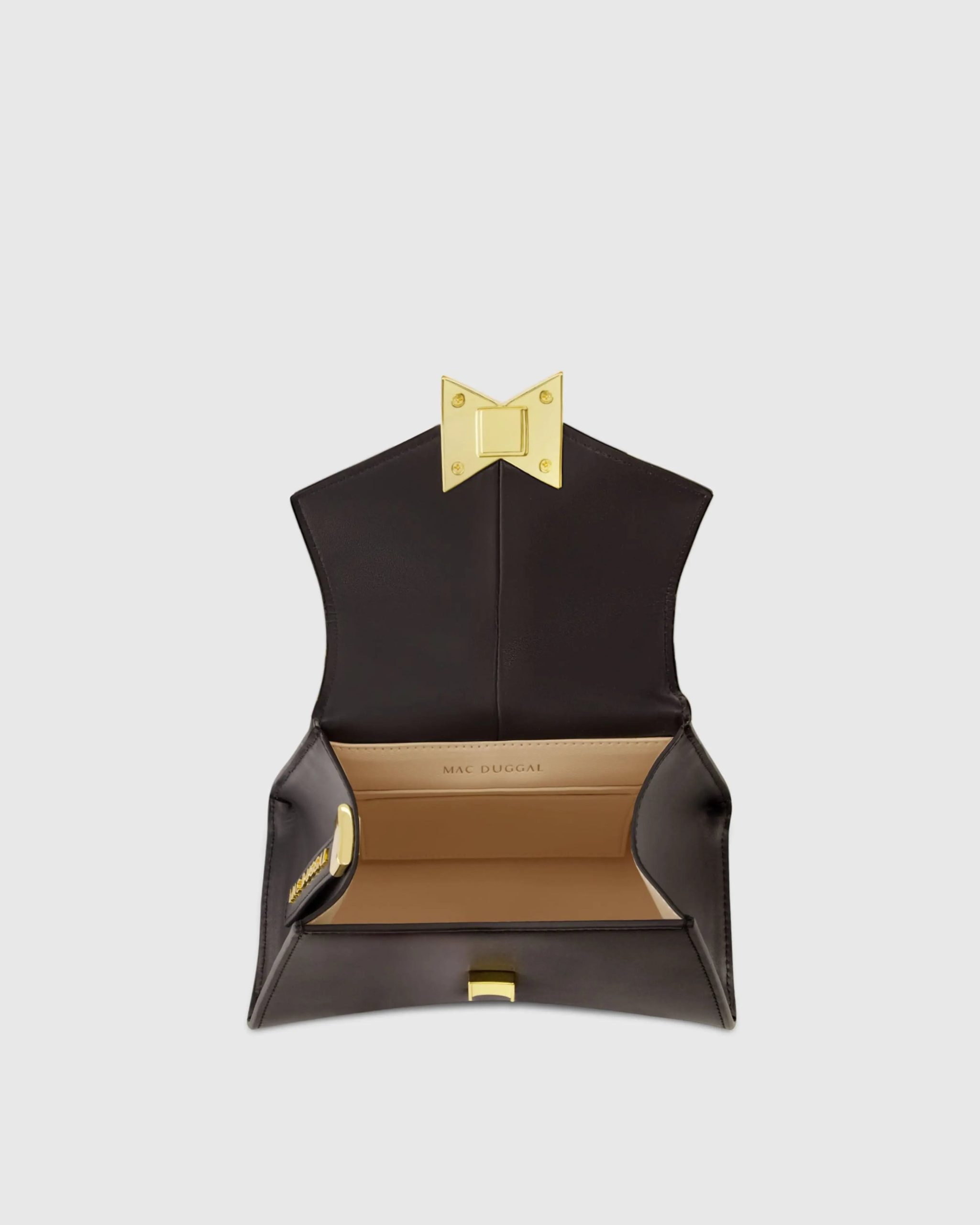 Chic and compact, our Angular Mini Leather Top Handle Bag is a versatile accessory for any occasion. Crafted from high-quality leather, its angular design adds a modern twist to the classic handbag. The perfect size to carry your essentials in style.