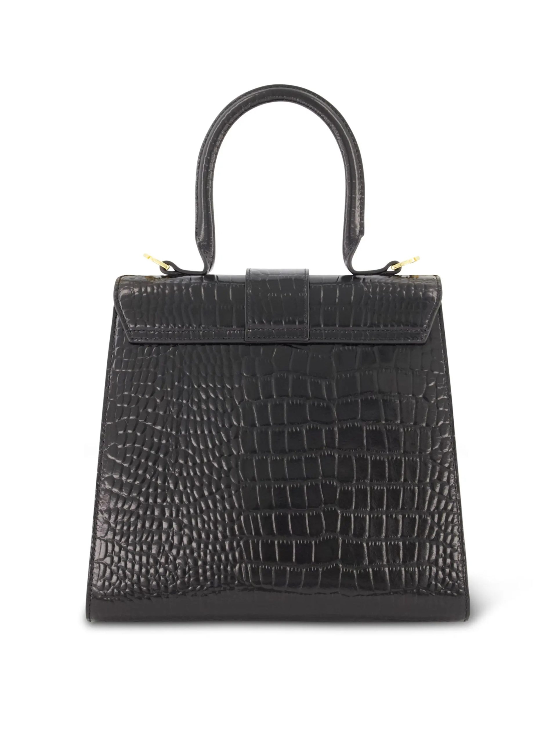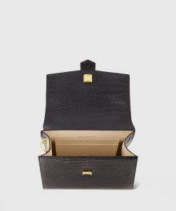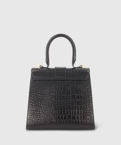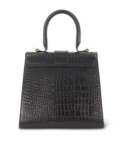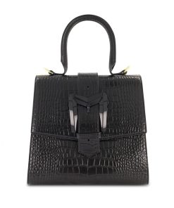 Mac Duggal Women’s Bags Black Buckled Medium Croco Leather Handbag With Detachable Strap | Black