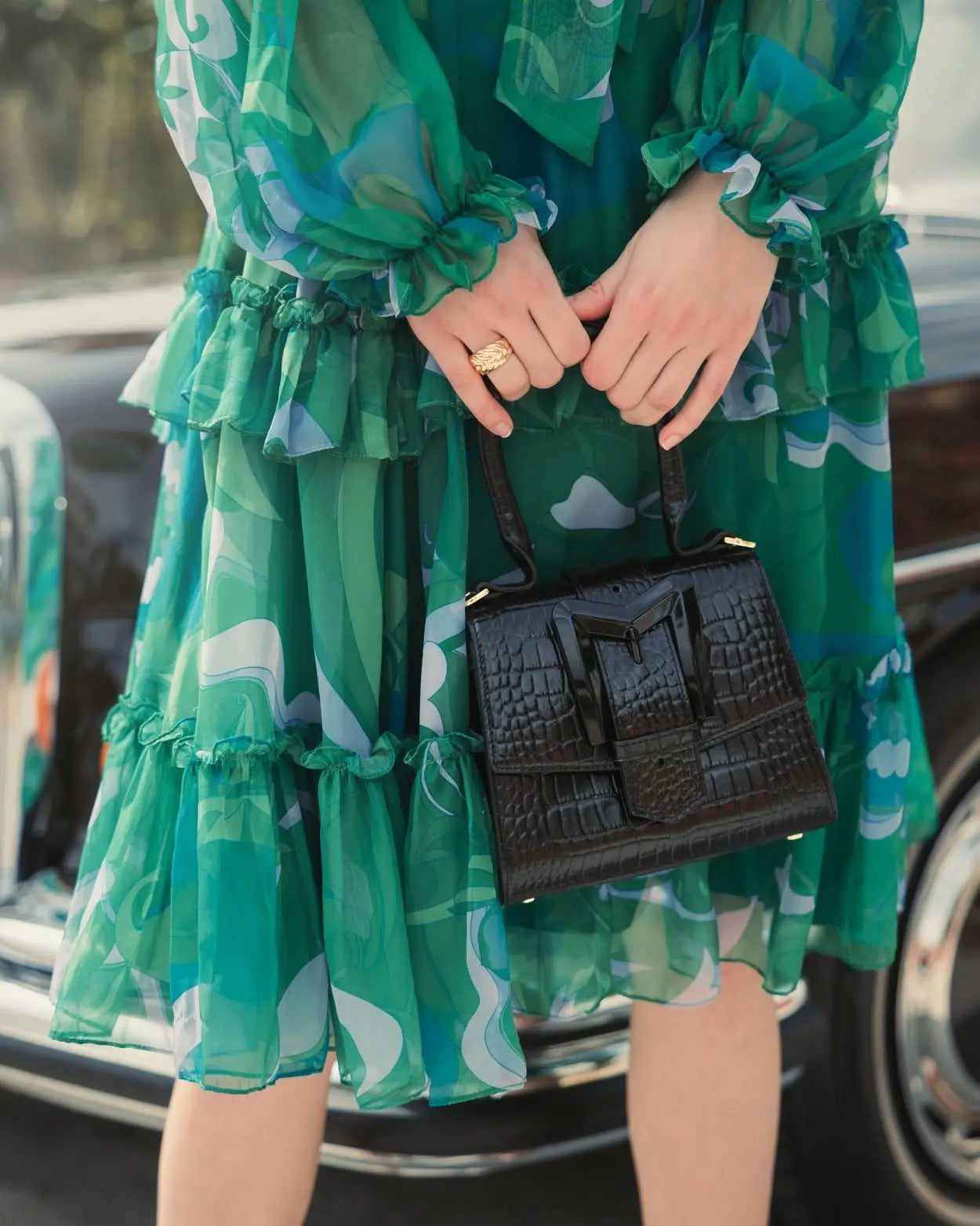 Chic and bold, our Buckled Mini Croco Leather Handbag is the perfect blend of style and sophistication. Crafted with functionality in mind, this handbag offers space for your everyday essentials, making it the perfect bag for running errands or enjoying a night out.