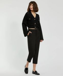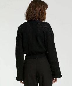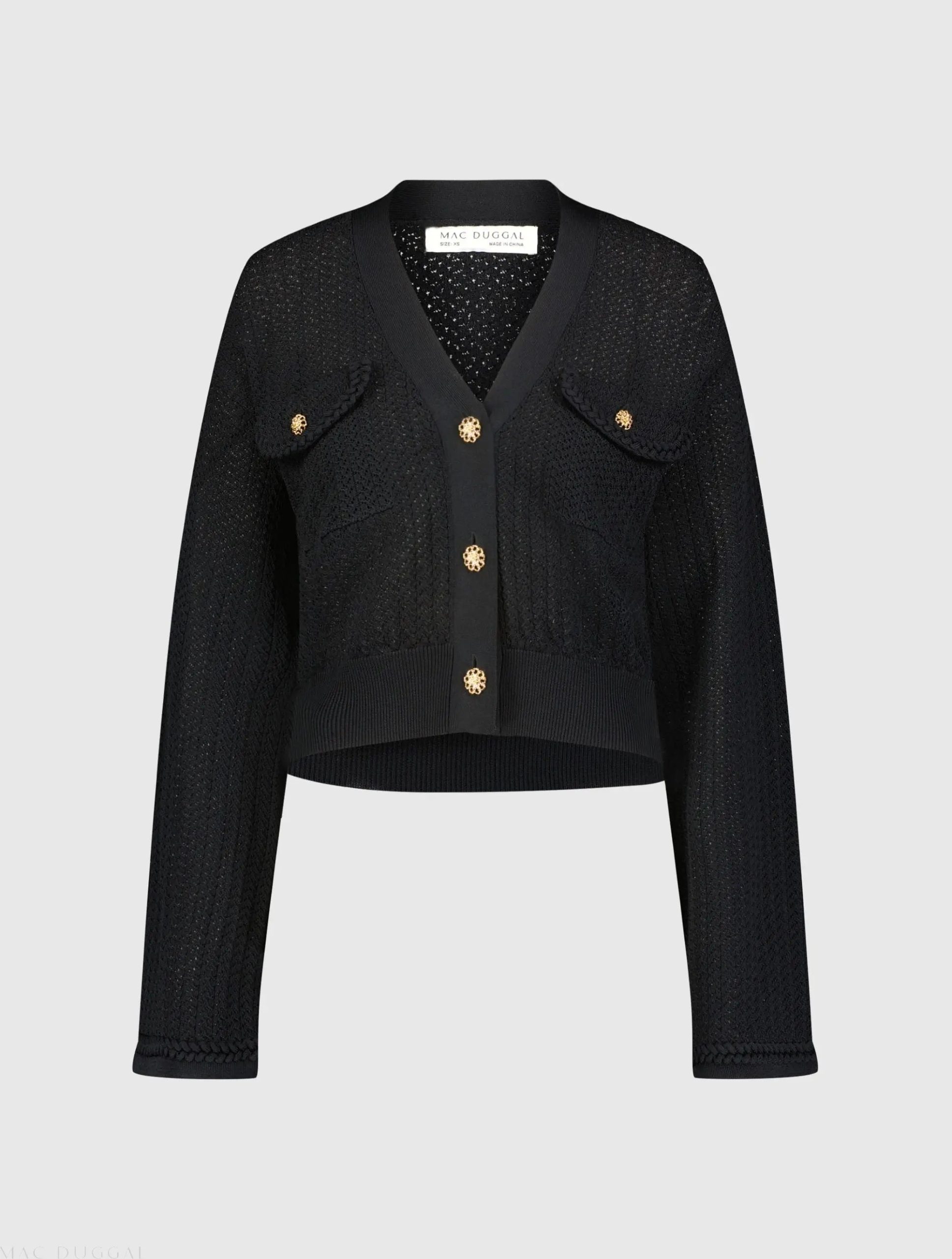 Be the first to review “Mac Duggal Women’s Black Crochet Knit Flare Long Sleeve Gold Button Cropped Cardigan | Black” Cancel reply