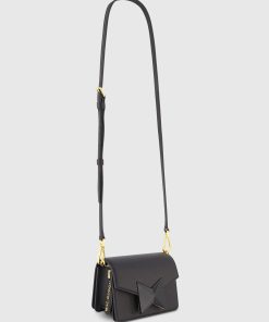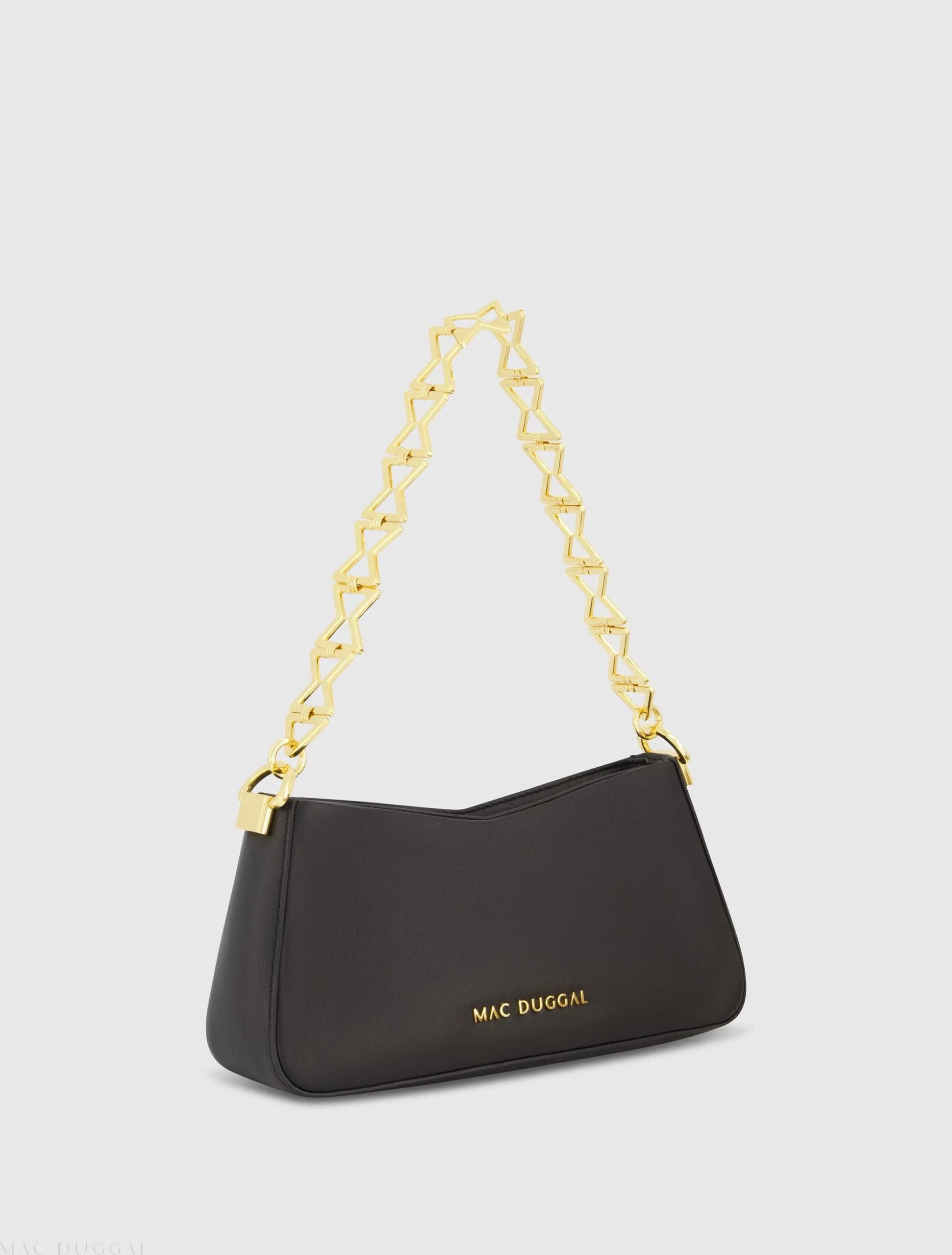 Mac Duggal Women’s Black Small Gold Strap Nappa Leather Shoulder Bag | Black