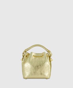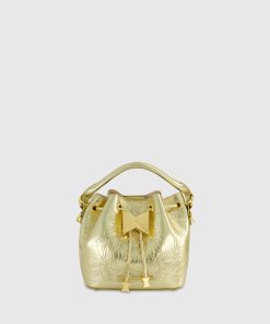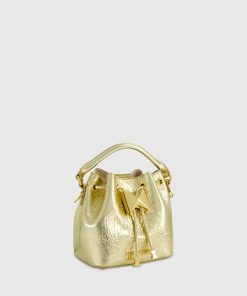 Add a touch of modern glamor to your look with our Crinkle Metallic Leather Bucket Handbag. Crafted from premium leather, its eye-catching texture and sleek metallic finish make this bag the perfect accessory for any occasion.