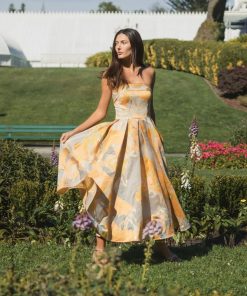 Be the first to review “Mac Duggal Women’s Dresses Beige And Orange Strapless Brocade Midi Dress With Pockets | Peach Multi” Cancel reply