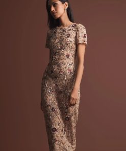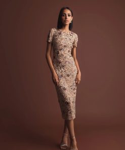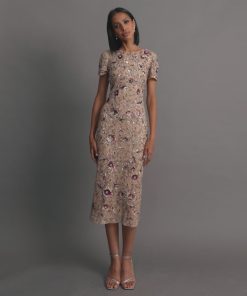 Be the first to review “Mac Duggal Women’s Dresses Beige Floral Embellished Short Sleeve Midi Dress | Mocha” Cancel reply