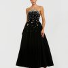 - Floral applique mesh overlay; 100% polyester lining