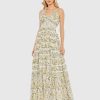 Mac Duggal Women’s Dresses Green High Neck Ruffle Cap Sleeve Floral Dress | Green Multi