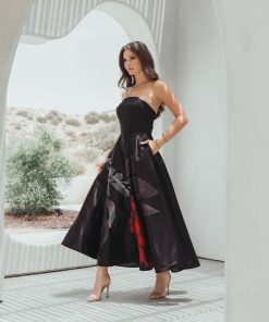 Be the first to review “Mac Duggal Women’s Dresses Black Crepe Printed Strapless Midi Dress With Pockets | Black” Cancel reply