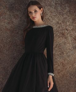 Be the first to review “Mac Duggal Women’s Dresses Black Embellished Jersey Long Sleeve Ballgown With Tulle Skirt | Black” Cancel reply