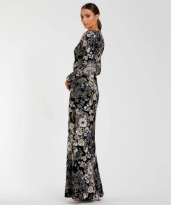 Mac Duggal Women’s Dresses Black Floral Embroidered Velvet Evening Gown | Black Multi