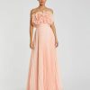 Mac Duggal Women’s Dresses Pink Drawstring Shoulder Chiffon Tiered Floral Dress | Pink