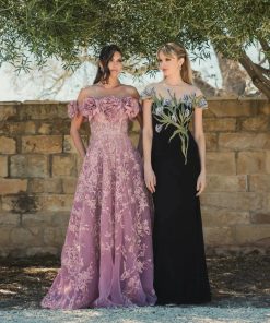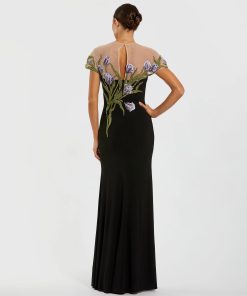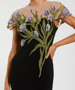Be the first to review “Mac Duggal Women’s Dresses Black High Neck Floral Embroidered Jersey Gown | Black Multi” Cancel reply