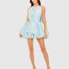 Mac Duggal Women’s Dresses Blue Floral Mesh Long Sleeve Micro Ruffle Mini Dress | Blue