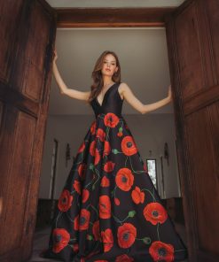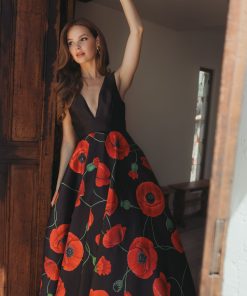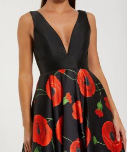 Be the first to review “Mac Duggal Women’s Dresses Black Plunge Neck Ball Gown With Floral Mikado Skirt | Black” Cancel reply
