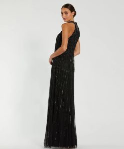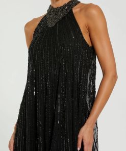 Mac Duggal Women’s Dresses Black Sleeveless Halter Neck Embellished Trapeze Gown | Black