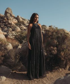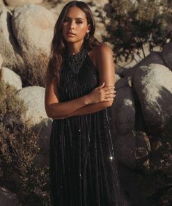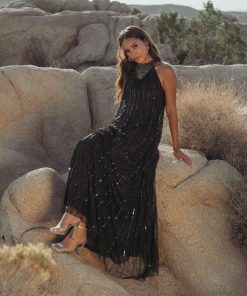 Be the first to review “Mac Duggal Women’s Dresses Black Sleeveless Halter Neck Embellished Trapeze Gown | Black” Cancel reply