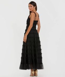 Mac Duggal Women’s Dresses Black Sleeveless Lace A Line Midi Dress With Ruffles | Black