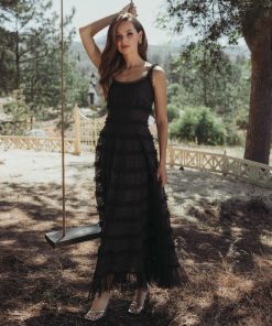 Be the first to review “Mac Duggal Women’s Dresses Black Sleeveless Lace A Line Midi Dress With Ruffles | Black” Cancel reply