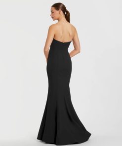 Mac Duggal Women’s Dresses Black Strapless Crepe Mermaid Gown With 3d Flowers | Black